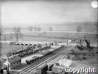 DescriptionView of Godmanchester railway station sidings and waggons, taken from the nearby Brown and Goodman's Mill. Portholme Meadow can be seen in the distance. This view was reproduced in "Northants & Hunts in the Twentieth Century. Contemporary Biographies" ed W.T. Pike and published in 1912, and was titled The Huntingdon Aerodrome, which was on Portholme in the early years of the twentieth century.